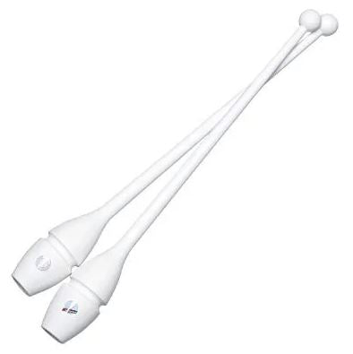 F.I.G approved Chacott Plastic Clubs. Chacott rhythmic gymnastic fiber-reinforced plastic clubs are bound to be a sensational performance with beautiful fluorescent colors, eye-catching design, and F.I.G.-certified! The clubs’ high-end plastic material features an excellent weight balance to promote superfluous precision throughout every routine! Each club is flown in from Japan at 400 and 450 millimeters in length, and an average weight of 150 grams.