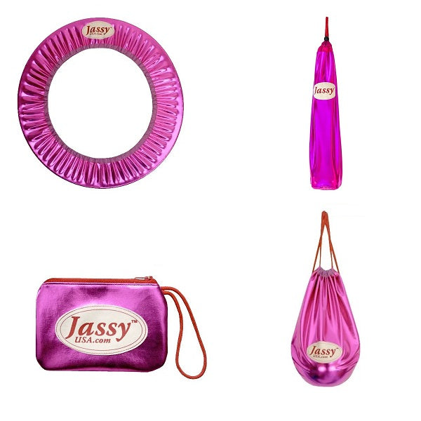 Introducing the Jassy Equipment Holders/Carriers Combo Set, comprising a Ball Bag, Clubs Carrier, Hoop Cover, and Shoe Pouch. With a range of vibrant colors to choose from, you can select the perfect style to reflect your individuality. Crafted from a sleek, metallic material, this set exudes contemporary flair. Proudly manufactured in the USA, each piece guarantees unparalleled quality and reliability. Elevate your gear collection with the Complete Set by Jassy, seamlessly blending functionality with style. An ideal gift for any aspiring Rhythmic Gymnast, this set offers a 15% savings compared to purchasing items separately.