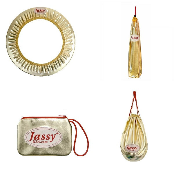 Introducing the Jassy Equipment Holders/Carriers Combo Set, comprising a Ball Bag, Clubs Carrier, Hoop Cover, and Shoe Pouch. With a range of vibrant colors to choose from, you can select the perfect style to reflect your individuality. Crafted from a sleek, metallic material, this set exudes contemporary flair. Proudly manufactured in the USA, each piece guarantees unparalleled quality and reliability. Elevate your gear collection with the Complete Set by Jassy, seamlessly blending functionality with style. An ideal gift for any aspiring Rhythmic Gymnast, this set offers a 15% savings compared to purchasing items separately.
