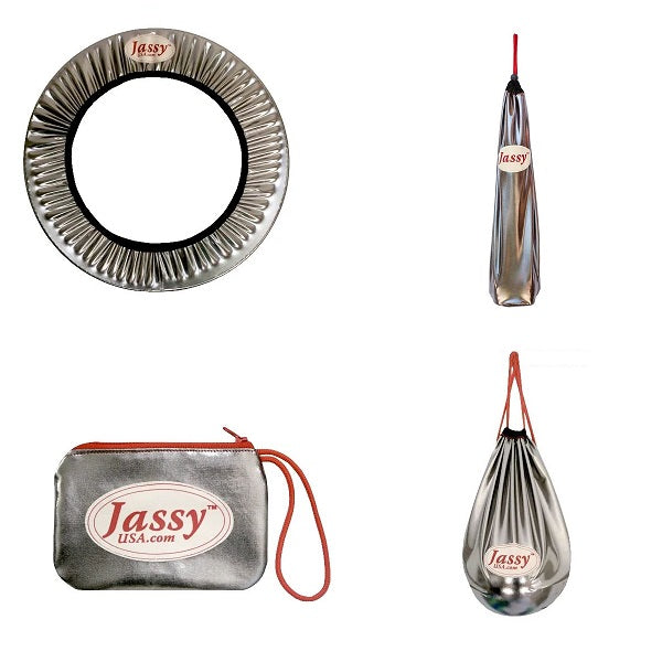 Introducing the Jassy Equipment Holders/Carriers Combo Set, comprising a Ball Bag, Clubs Carrier, Hoop Cover, and Shoe Pouch. With a range of vibrant colors to choose from, you can select the perfect style to reflect your individuality. Crafted from a sleek, metallic material, this set exudes contemporary flair. Proudly manufactured in the USA, each piece guarantees unparalleled quality and reliability. Elevate your gear collection with the Complete Set by Jassy, seamlessly blending functionality with style. An ideal gift for any aspiring Rhythmic Gymnast, this set offers a 15% savings compared to purchasing items separately.