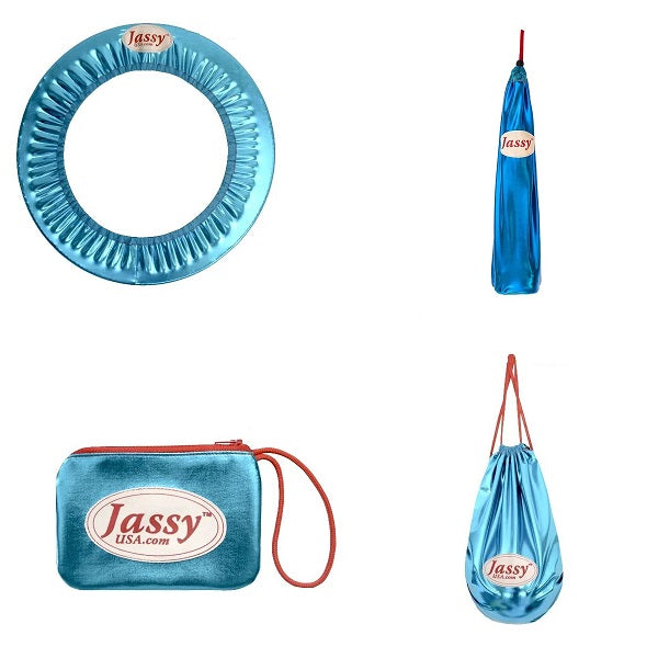 Introducing the Jassy Equipment Holders/Carriers Combo Set, comprising a Ball Bag, Clubs Carrier, Hoop Cover, and Shoe Pouch. With a range of vibrant colors to choose from, you can select the perfect style to reflect your individuality. Crafted from a sleek, metallic material, this set exudes contemporary flair. Proudly manufactured in the USA, each piece guarantees unparalleled quality and reliability. Elevate your gear collection with the Complete Set by Jassy, seamlessly blending functionality with style. An ideal gift for any aspiring Rhythmic Gymnast, this set offers a 15% savings compared to purchasing items separately.