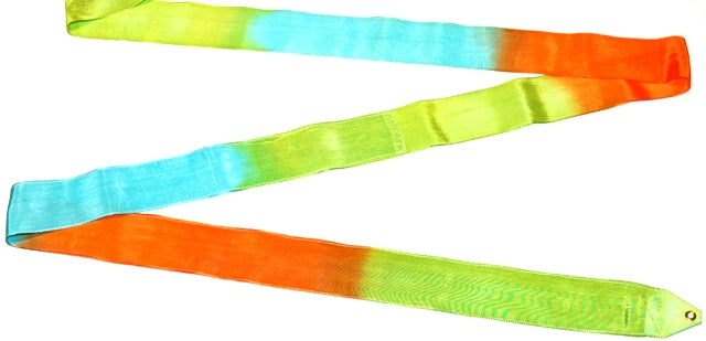 Osaki Rhythmic Gymnastics Triple Color Ribbon, Model: M-71AG; Color: Green-Orange-Yellow; TOP QUALITY