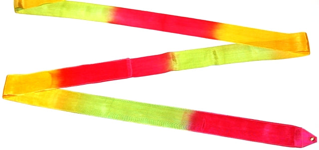 Osaki Rhythmic Gymnastics Triple Color Ribbon, Model: M-71AG; Color: Pink-Green-Yellow; TOP QUALITY