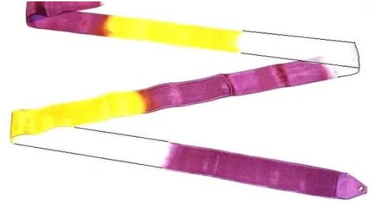 Osaki Rhythmic Gymnastics Triple Color Ribbon, Model: M-71AG; Color: Purple-White-Yellow; TOP QUALITY